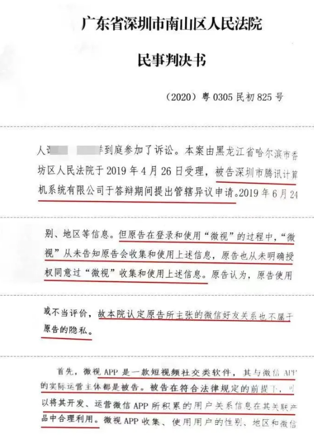2021年1月22日,深圳市南山区人民法院对一用户起诉腾讯的侵权纠纷案作出判决,明确微信好友关系不属于个人隐私,引起了广泛热议。