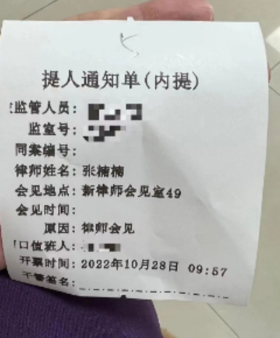 3.张楠楠律师到深圳市宝安看守所会见诈骗案当事人。