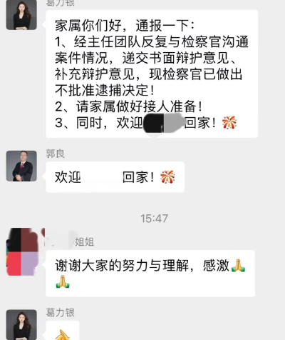 日前,张楠楠律师团队办理了一起涉嫌销售假冒注册商标的商品罪案件,成功为当事人争取到检察机关不批捕决定,涉案人员已获取保候审,今晚与家人团聚。