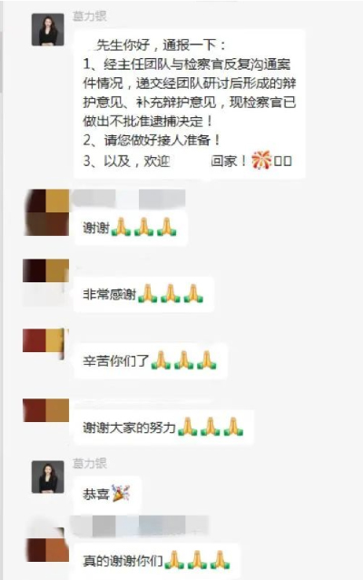 日前,张楠楠律师团队办理了一起涉诈骗的案件,成功为当事人争取到检察机关不批捕决定,涉案人员已获取保候审,今晚与家人团聚。