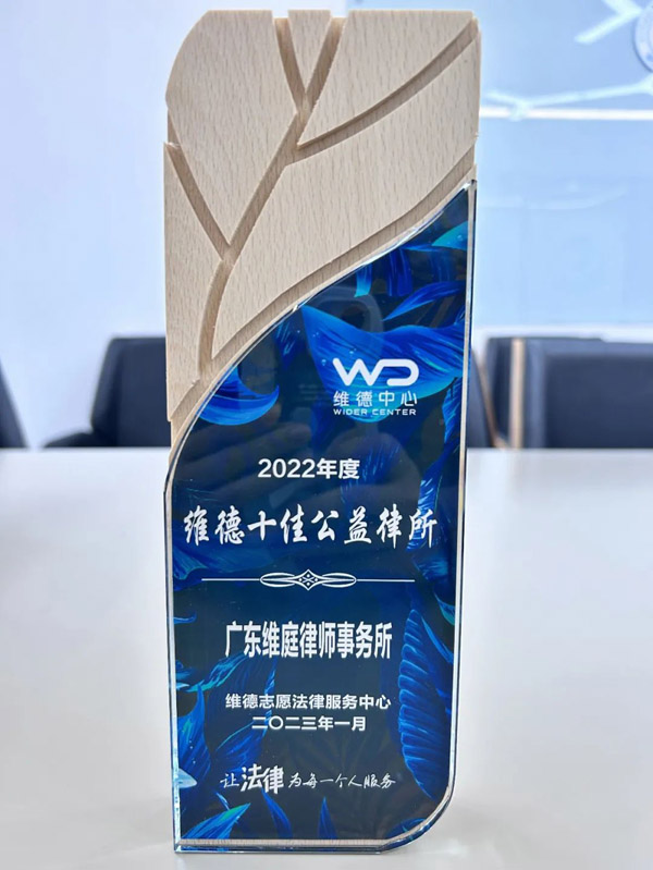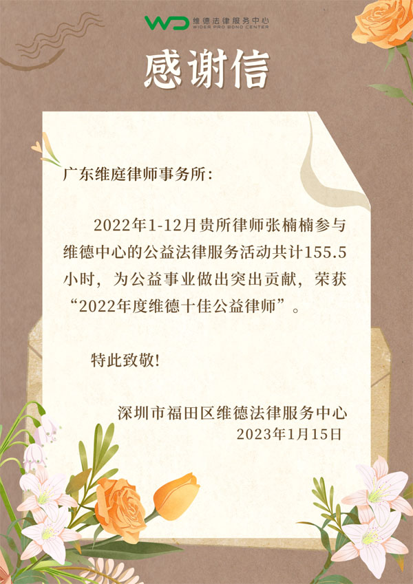 恭喜张楠楠律师荣获2022年度“维德十佳公益律师”称号