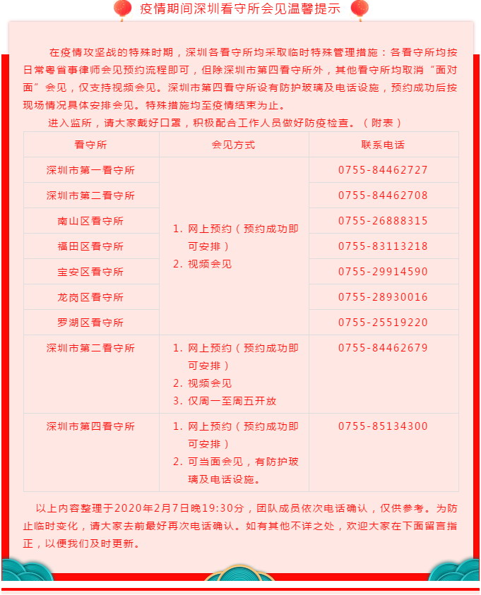 > 【最新】疫情期间深圳看守所会见温馨提示