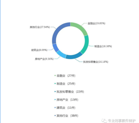 从上图可以看出,刑事案例行业分布主要集中在金融业、制造业、批发和零售业、房地产业和建筑业。