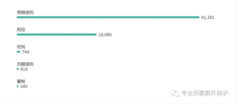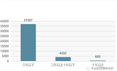 从有期徒刑量刑看,三年以下的37207件,占比88.33%,显然有期徒刑中主要是犯轻罪,重罪占比非常少。