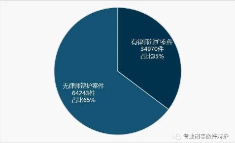 从上图可以看出,2019年广东刑事案例中,只有35%的案件有律师辩护。