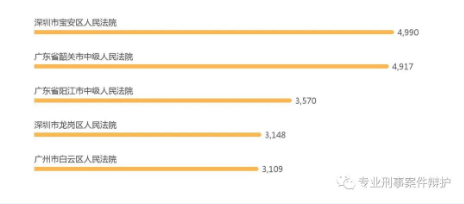 从上图可以看出,刑事案件数量前五的,深圳就有两家,其中深圳市宝安区人民法院案件数量排名第一。
