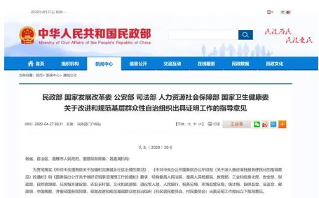 经国务院同意,民政部、国家发展改革委、公安部、司法部、人力资源和社会保障部、国家卫生健康委六部门联合出台《关于改进和规范基层群众性自治组织出具证明工作的指导意见》,改进和规范基层群众性自治组织出具证明工作。