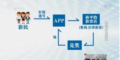 上视新闻“案件聚焦”披露,所谓的APP售彩,就是彩民在这些非法运营的APP上下单,体彩店业主接单收钱后,在店内的彩票机上打票。如果彩民中奖,店主再将奖金通过APP转入彩民的账户。